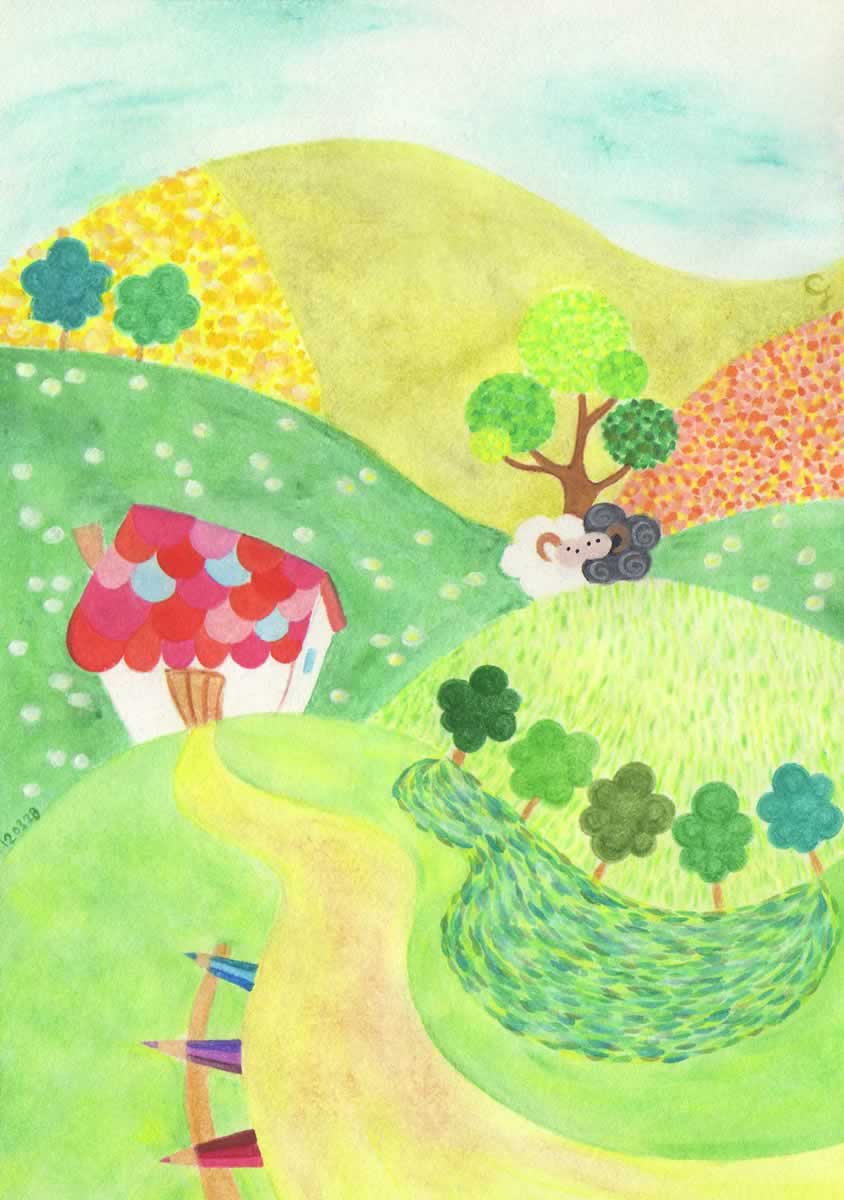 對你來說,家是什麼?綿羊們一起在悠閒的山野間,環山簇擁著,開心在其中悠遊,有點魔幻,有點浪漫,又有點溫暖,這就是克里斯多對家的想像。