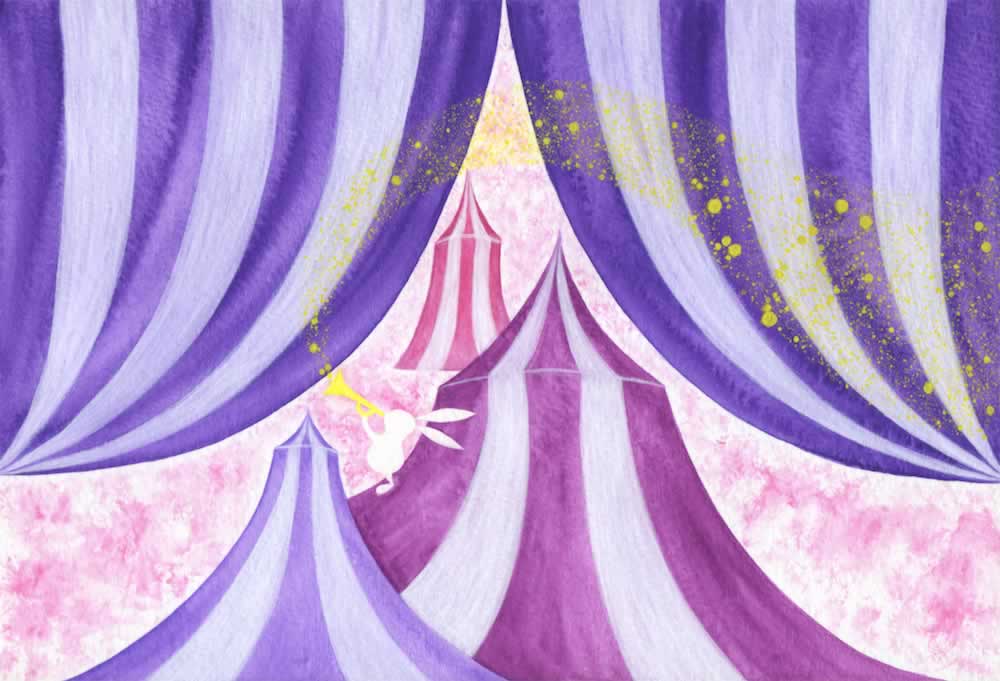 在奇幻世界裡的馬戲團,也充滿美麗的神祕元素,白兔吹響號角,天空揚起星辰,似乎在預告,有個美麗的夢想在今晚就要實現!