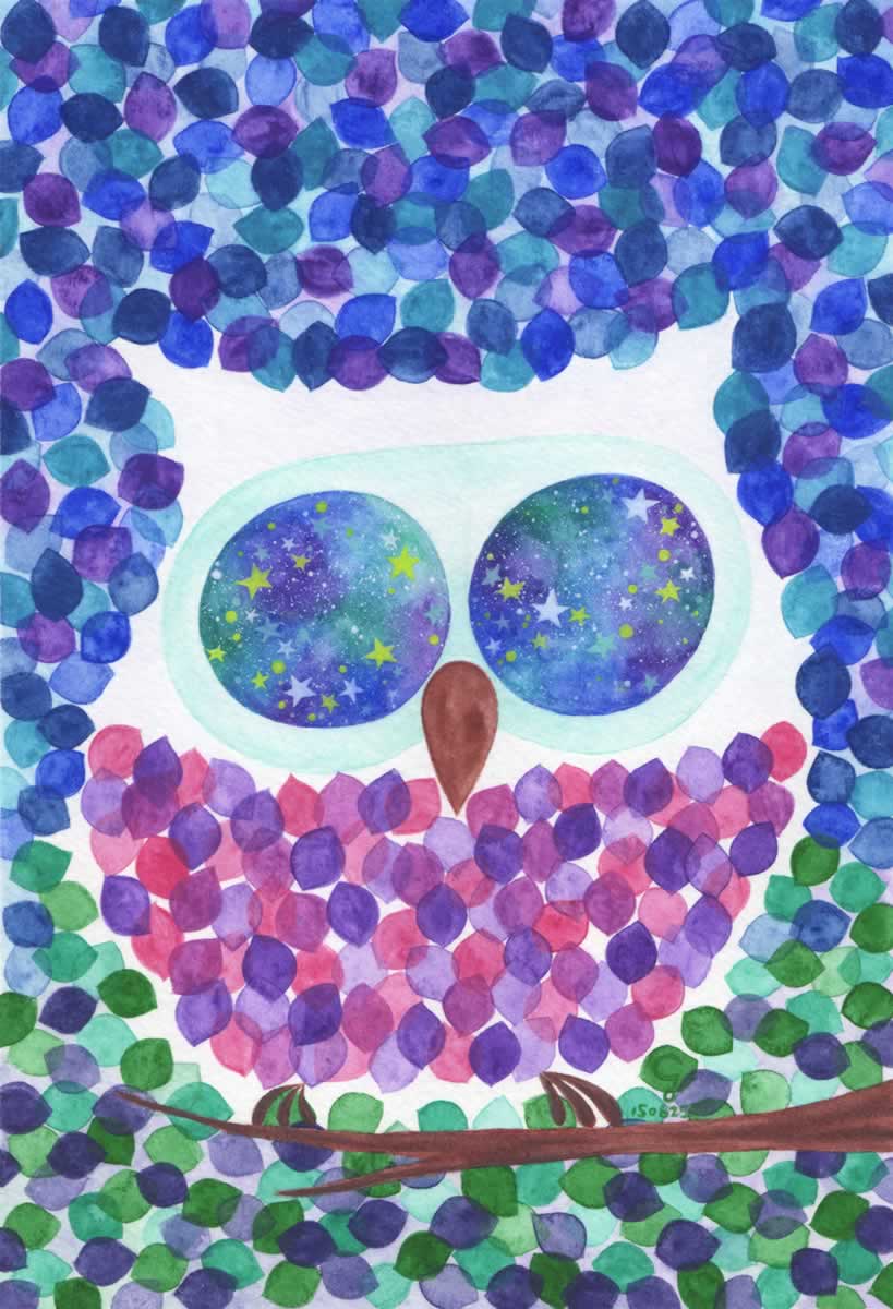 克里斯多的奇幻森林裡也有一個智者貓頭鷹,在林中的夜梟,他的眼中裝滿了來自宇宙的浩瀚智慧,在奇幻森林裡的樹葉片片遮蔽,智者與森林融成一體,體現了最和諧的智慧象徵。